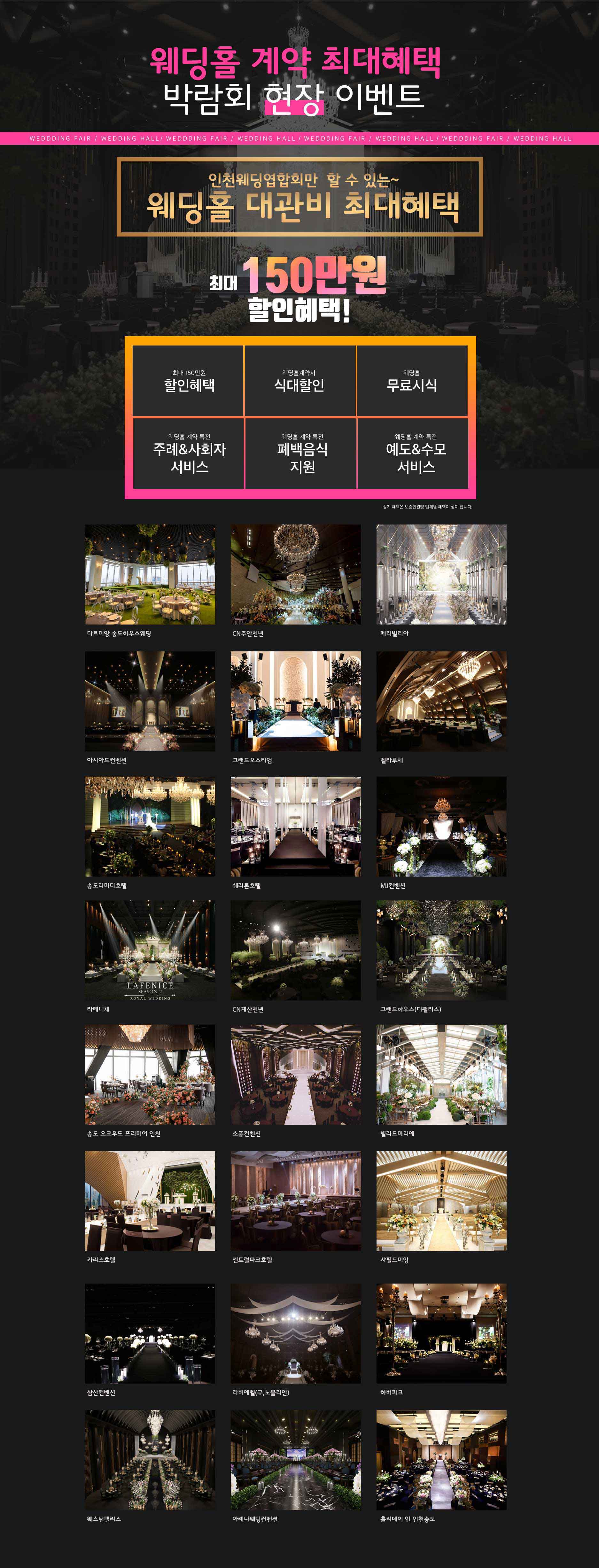 1. 개인정보의 수집 및 이용 목적 2. 수집하려는 개인정보의 항목 : 이름, 연락처, 예식일 3. 개인정보의 보유 및 이용 기간 : 고객 삭제 요청시까지 4. 동의 거부권 및 거부 시 불이익 사항 : 고객님은 동의를 거부하실 수 있으며, 거부 시 박람회 참가신청이 불가합니다. 5. 개인정보 제3자 제공 - 제공받는자 : 웨딩박람회 협력업체 - 제공목적 : 결혼준비 관련 상품의 안내와 서비스의 제공 - 제공항목 : 개인식별정보(성명, 휴대전화번호) - 보유기간 : 제공 동의일로부터 제공목적을 달성할 때까지 - 추가안내사항 삼성디지털프라자, LG베스트샵, 하이마트 할인쿠폰 (이하 “서비스”라 한다)와 관련하여, 본인은 아래의 내용을 숙지하였으며, 이에 따라 서비스가 수집한 본인의 개인정보를 아래와 같이 제3자에게 제공하는 것에 대해 동의합니다. 개인정보보호법에 의거 귀하의 개인정보를 아래와 같이 제3자 제공하는 것에 대해 동의를 받고자 합니다. - 개인정보를 제공받는 자 : 삼성전자판매 주식회사, LG베스트샵, 하이마트 - 제공항목 : ( 이름, 연락처, 예식일, 기타문의 ) - 이용목적 : 웨딩고객 특별할인혜택 제공, 혼수 가전 제품 판촉 관련 (TM/MMS) 업무 시행 - 보유 및 이용 기간 : 10개월 ※ 귀하께서는 귀하의 개인정보를 제3자에게 제공하는 것에 대한 동의를 거부하실 수 있으나, 이는 TM 등 서비스 제공에 필수적인 제공이므로, 동의를 거부하실 경우 서비스 이용 등이 제한됩니다.